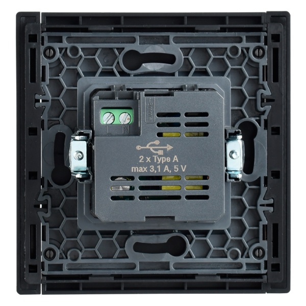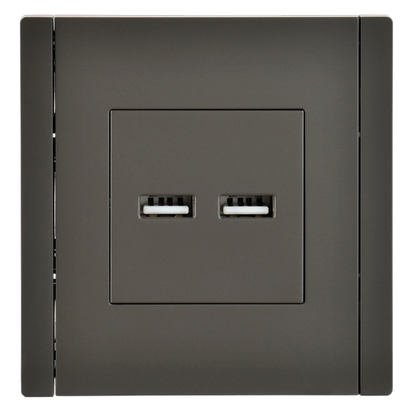 Одноместная зарядная розетка с разъемами USB тип-A скрытого монтажа серого цвета FP-U21-D31-K03
