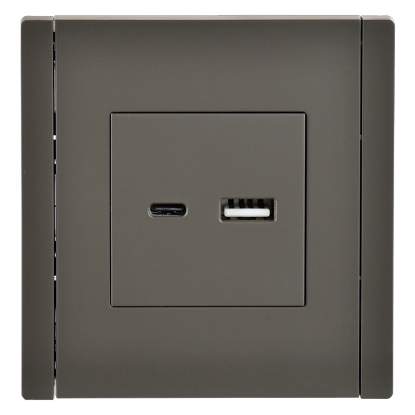 Одноместная зарядная розетка с разъемами тип-A+С скрытого монтажа серого цвета FP-U22-D31-K03