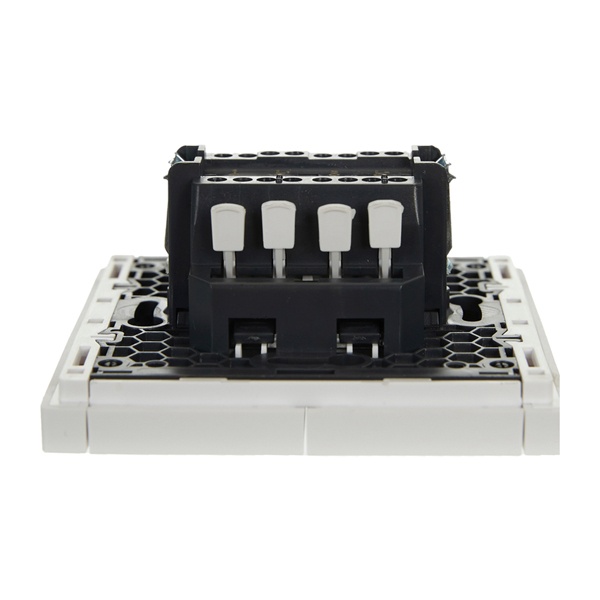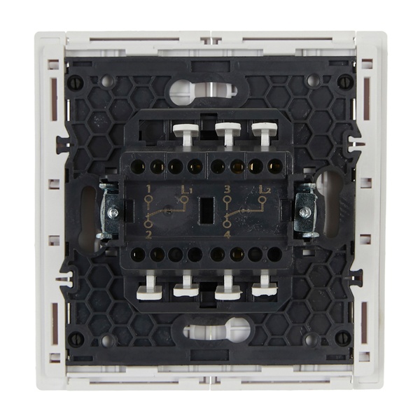 Механизм 2-клавишного проходного выключателя скрытого монтажа с клавишей белого цвета FP-V22-0-10-1-K01