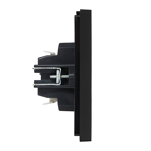 Механизм 2-клавишного проходного выключателя скрытого монтажа с клавишей черного цвета FP-V22-0-10-1-K02