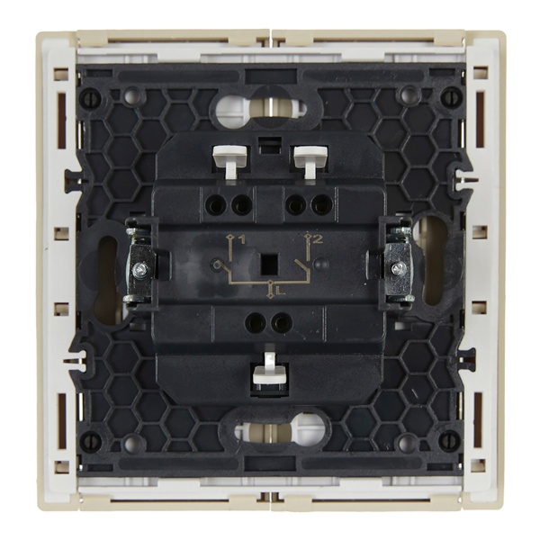 Механизм 2-клавишного проходного выключателя скрытого монтажа с клавишей бежевого цвета FP-V22-0-10-1-K10