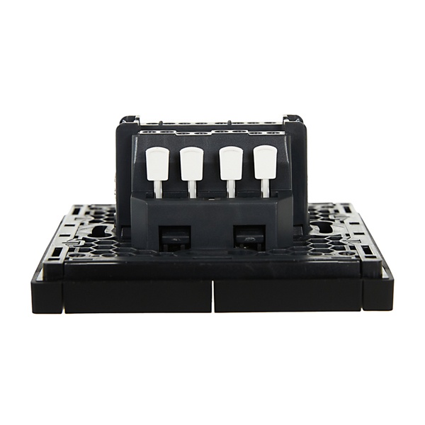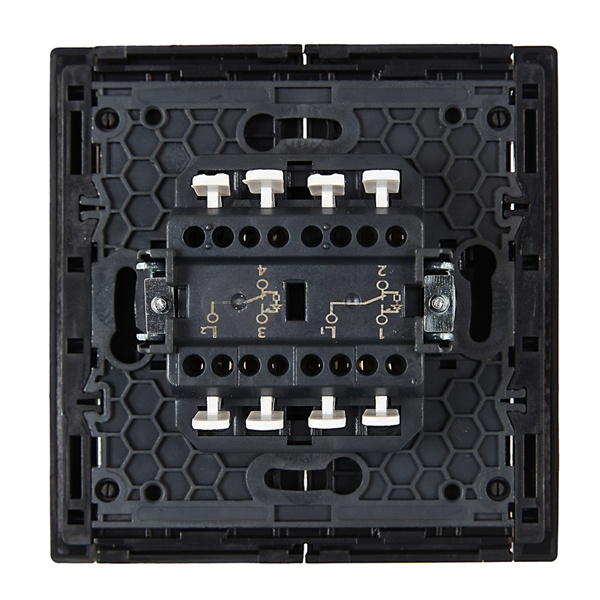 Механизм 2-клавишного проходного выключателя скрытого монтажа с клавишей черного цвета FP-V22-1-10-1-K02