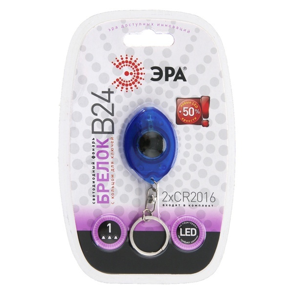 Стильный портативный фонарь-брелок B24. Это функциональный аксессуар, маленький, лёгкий и надёжный. Это удобный брелок, который может пригодиться в самых разных бытовых случаях, например, когда в темноте надо подсветить дорогу или замочную скважину. Источником света в фонарике является яркий светодиод, который светит белым светом, экономичный и не требует замены. Светодиод не тускнеет и не перегорает. Полупрозрачный корпус сделан из ударопрочного пластика, он не только красиво подсвечивается диодом, но и достаточно прочный и наджный.Фонарь работает от двух батареек, которые уже в комплекте, то есть фонарь работает сразу после покупки. Батареек хватает примерно на 25 часов непрерывной работы. Для крепления на ключи или рюкзак используется металлическое кольцо. Фонарь-брелок очень яркий, дальность луча составляет 10 метров. Этого достаточно для большинства бытовых ситуаций, когда требуется дополнительный источник освещения.