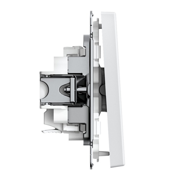 Одноклавишный выключатель предназначен для управления одним или несколькими источниками света с одновременным включением-выключением. Механизм оснащен декоративной съемной клавишей белого цвета.