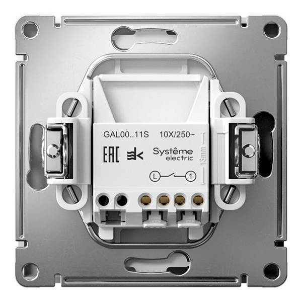 Электрический 1-клавишный встраиваемый выключатель света АртГеллери белого цвета с пружинными клеммами Систем Электрик GAL000111S