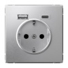 Встраиваемая электрическая силовая розетка с заземлением АртГеллери алюминиевого цвета Систем Электрик GAL000343