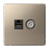 Розетка информационная АртГеллери для скрытой установки, с двойным разъемом RJ45, категория 5e, цвета шампань GAL000585