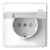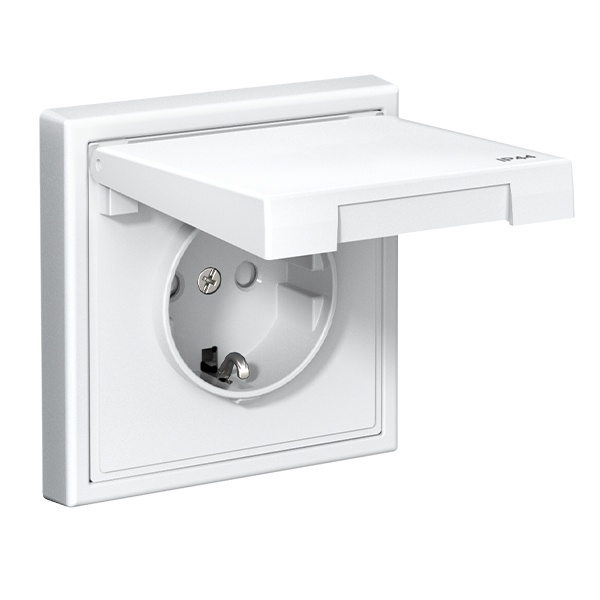 Встраиваемая влагозащищенная электрическая силовая розетка с заземлением и защитными шторками и крышкой АртГеллери белого цвета Систем Электрик GAL440146