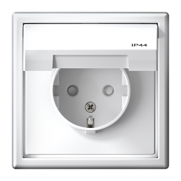 Дизайн лицевой панели выполнен в строгом классическом формате – белый квадрат с круглым постом для вилочного соединения. Пластик с ионами серебра в белом цвете обеспечивает антибактериальный эффект.