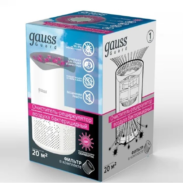 Очиститель воздуха бактерицидный Gauss GR001 может работать в присутствии людей и животных, так как источник ультрафиолетового излучения находится внутри прибора и безопасен для глаз и кожи.
