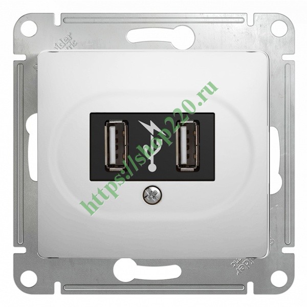 Зарядка USB 5В /1400 мА, 2 х 5В /700 мА механизм SE Glossa, белый GSL000132