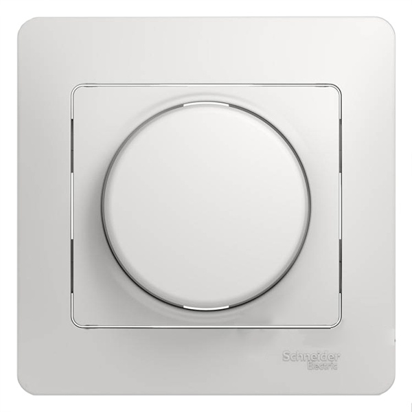 Светорегулятор SE Glossa (в сборе, цвет белый) поворотный для нагрузки мощностью до 630 Вт, подходит для LED ламп.- Светорегулятор позволяет установить в помещении комфортный уровень освещения.- При подключении второго переключателя диммер может использоваться как проходной переключатель.- Может использоваться как выключатель или переключатель.- Выполнен из материала PС+ASA, стойкого к УФ-излучению и появлению царапин.