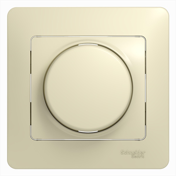 Светорегулятор SE Glossa (в сборе, цвет бежевый) поворотный для нагрузки мощностью до 630 Вт, подходит для LED ламп.- Светорегулятор позволяет установить в помещении комфортный уровень освещения.- При подключении второго переключателя диммер может использоваться как проходной переключатель.- Может использоваться как выключатель или переключатель.- Выполнен из материала PС+ASA, стойкого к УФ-излучению и появлению царапин.