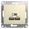 Розетка SE Glossa (цвет бежевый) двойная USB с разъемами типа A+C.- Выполнена из материала PС+ASA, стойкого к УФ-излучению и появлению царапин.- Самая современная USB-зарядка с двумя разъемами позволяет заряжать как стандартные мобильные устройства через разъем типа А, так и новейшии устройства, в том числе ноутбуки, с разъемом типа С.