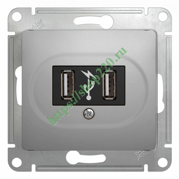 USB розетка 5В/1400мА, 2х5В/700мА, цвет - алюминий SE Glossa для скрытой установки GSL000332
