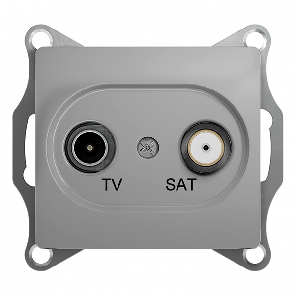 TV-SAT розетка оконечная SE Glossa 1DB (механизм), алюминий — оконечная розетка для подключения телевизионного и спутникового оборудования в системах распределения сигнала. Предназначена для установки в конце (на «оконечном» участке) линии и обеспечивает аккуратное, надежное подключение кабеля и устройств. Механизм выполнен в цвете алюминий и относится к серии Glossa бренда Systeme Electric.