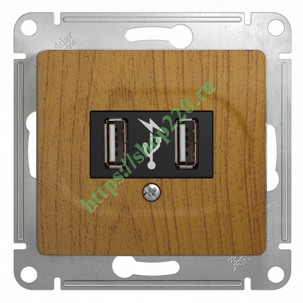 Зарядка USB 5В /1400 мА, 2 х 5В /700 мА механизм SE Glossa, дерево дуб GSL000532