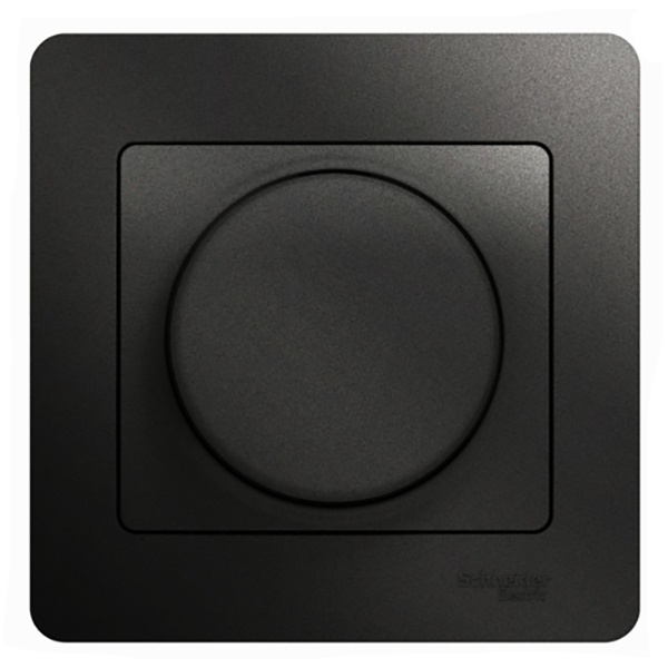 Светорегулятор SE Glossa (в сборе, цвет антрацит) поворотный для нагрузки мощностью до 630 Вт, подходит для LED ламп.- Светорегулятор позволяет установить в помещении комфортный уровень освещения.- При подключении второго переключателя диммер может использоваться как проходной переключатель.- Может использоваться как выключатель или переключатель.- Выполнен из материала PС+ASA, стойкого к УФ-излучению и появлению царапин.