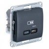 Розетка SE Glossa (цвет антрацит) двойная USB с разъемами типа A+C.- Выполнена из материала PС+ASA, стойкого к УФ-излучению и появлению царапин.- Самая современная USB-зарядка с двумя разъемами позволяет заряжать как стандартные мобильные устройства через разъем типа А, так и новейшие устройства, в том числе ноутбуки, с разъемом типа С.
