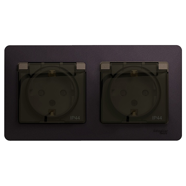 Розетка SE Glossa (в сборе, цвет шоколад) двойная с заземлением, шторками и крышкой подходит для сетей 250 В, на ток 16 А.- Изделие со степенью защиты IP44 обеспечит безопасность использования в ванной и на кухне.- Заземляющий контакт обеспечивает дополнительную защиту от удара электрическим током. При наличии заземления электрический потенциал уходит в землю, защищая человека.- Выполнен из материала PС+ASA, стойкого к УФ-излучению и появлению царапин.