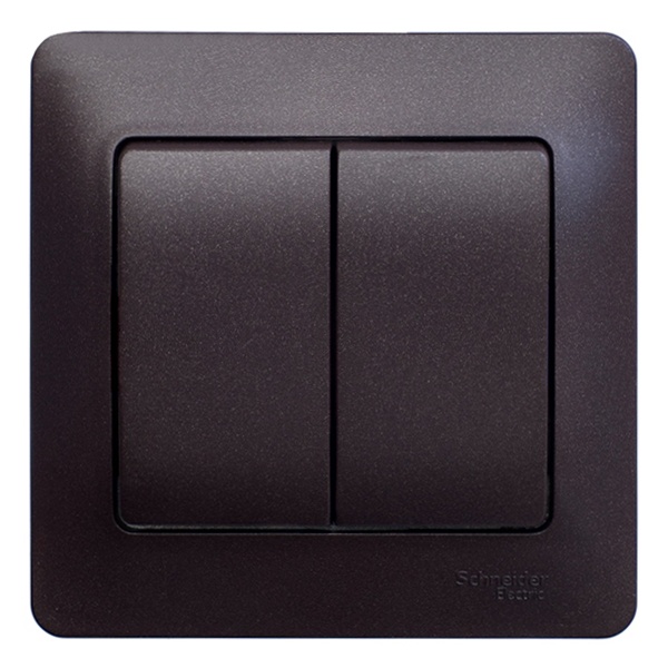 Выключатель SE Glossa (в сборе, цвет шоколад) двухклавишный подходит для сетей 250 В, на ток 10 А.- Двухклавишный выключатель позволяет управлять двумя источниками света с одной точки.- Выполнен из материала PС+ASA, стойкого к УФ-излучению и появлению царапин.- Эргономичные клеммы расположены в два ряда: сверху и снизу.
