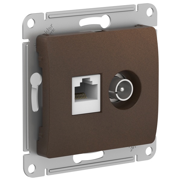 Механизм многофункциональной розетки скрытого монтажа с разъёмами TV+RJ45, Глосса, коричневый цвет GSL000889
