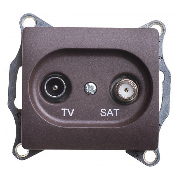 Механизм SE Glossa (цвет шоколад) розетки TV-SAT оконечной 1DB предназначен для подключения бытовой теле-, видео- и радиоаппаратуры к антенному кабелю при внутренней установке в жилых, общественных и промышленных помещениях.- Оконечная розетка может устанавливаться как отдельно, так и в конце подключения «в линию»- Выполнен из материала PС+ASA, стойкого к УФ-излучению и появлению царапин.