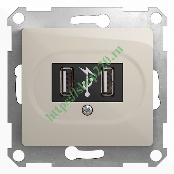 GSL000932 Зарядка USB 5В /1400 мА, 2 х 5В /700 мА механизм SE Glossa, молочный