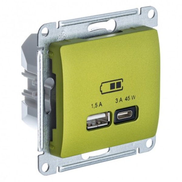 Розетка USB Glossa тип A+C 45Вт QC PD высокоскор. ЗУ механизм фисташ. SE GSL001029