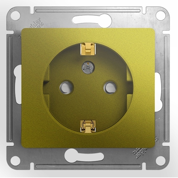 Механизм SE Glossa (цвет фисташковый) розетки одинарной с заземлением и шторками подходит для сетей 250 В, на ток 16 А.- Заземляющий контакт обеспечивает дополнительную защиту от удара электрическим током. При наличии заземления электрический потенциал уходит в землю, защищая человека.- Выполнен из материала PС+ASA, стойкого к УФ-излучению и появлению царапин.- Эргономичные клеммы розеток расположены в один ряд.