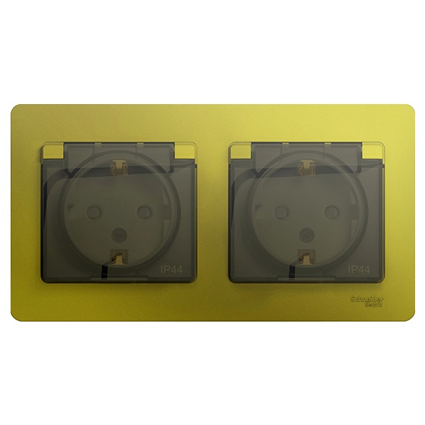 Розетка SE Glossa (в сборе, цвет фисташковый) двойная с заземлением, шторками и крышкой подходит для сетей 250 В, на ток 16 А.- Изделие со степенью защиты IP44 обеспечит безопасность использования в ванной и на кухне.- Заземляющий контакт обеспечивает дополнительную защиту от удара электрическим током. При наличии заземления электрический потенциал уходит в землю, защищая человека.- Выполнен из материала PС+ASA, стойкого к УФ-излучению и появлению царапин.