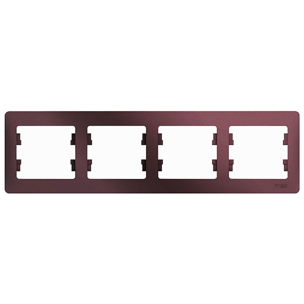 Рамка SE Glossa (цвет баклажановый) четырёхместная.- Устанавливается в горизонтальном положении.- Выполнена из материала PС+ASA, стойкого к УФ-излучению и появлению царапин.- Позволяет гармонично вписать электроустановочное изделие в интерьер помещения.