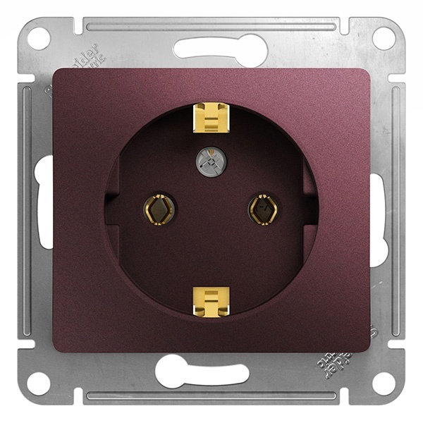 Механизм SE Glossa (цвет баклажановый) розетки одинарной с заземлением и без шторок подходит для сетей 250 В, на ток 16 А.- Заземляющий контакт обеспечивает дополнительную защиту от удара электрическим током. При наличии заземления электрический потенциал уходит в землю, защищая человека.- Выполнен из материала PС+ASA, стойкого к УФ-излучению и появлению царапин.- Эргономичные клеммы розеток расположены в один ряд.
