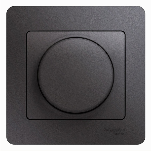 Светорегулятор SE Glossa (в сборе, цвет графит) поворотный для нагрузки мощностью до 630 Вт, подходит для LED ламп.- Светорегулятор позволяет установить в помещении комфортный уровень освещения.- При подключении второго переключателя диммер может использоваться как проходной переключатель.- Может использоваться как выключатель или переключатель.- Выполнен из материала PС+ASA, стойкого к УФ-излучению и появлению царапин.