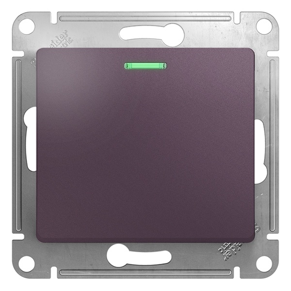 Механизм SE Glossa (цвет сиреневый туман) переключателя 1-клавишного с подсветкой подходит для сетей 250 В, на ток 10 А.- Благодаря современной светодиодной подсветке зеленого цвета изделие легко найти в темноте.- Переключатель позволяют управлять одним источником света с двух точек.- Выполнен из материала PС+ASA, стойкого к УФ-излучению и появлению царапин.- Эргономичные клеммы расположены в два ряда: сверху и снизу.