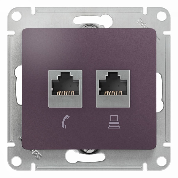 Механизм SE Glossa (цвет сиреневый туман) двойной розетки разъёмами RJ45 категория 5е и RJ11 предназначен для удобного и быстрого подключения вашего компьютера и телефона к соответствующим сетям.- Выполнен из материала PС+ASA, стойкого к УФ-излучению и появлению царапин.