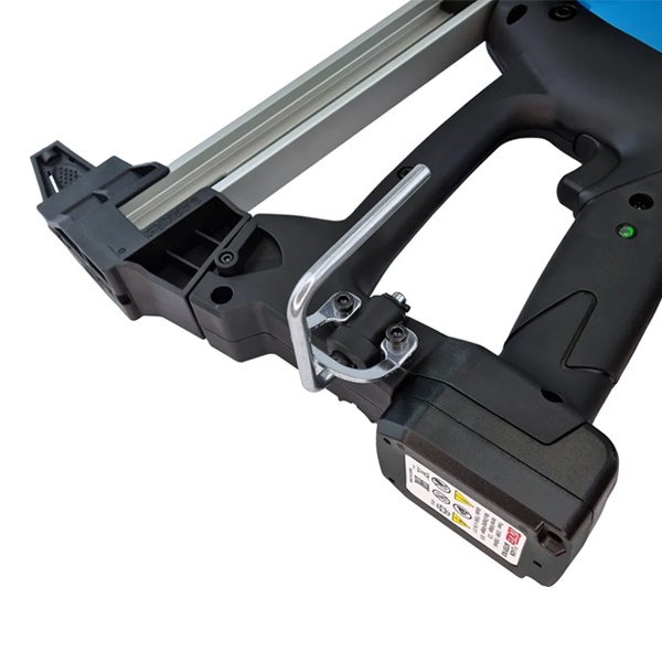 Основной особенностью данного инструмента является отсутствие прижимной скобы и наличие узкого ствола, что делает его особенно удобным для электромонтажа. В данной модификации роль прижимного механизма выполняет сам ствол, предотвращая холостые выстрелы («выстрел в воздух»). Такое конструктивное решение обеспечивает компактность пистолета и расширяет его функциональность. Он подходит для установки широкого спектра клипс различных производителей диаметром от 16 мм, что делает его универсальным инструментом для профессионалов.