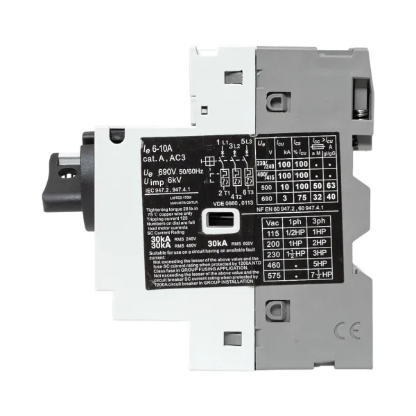 точную защиту двигателя благодаря встроенному тепловому и магнитному расцепителям;ручное включение/отключение с возможностью фиксации в выключенном положении;индикацию срабатывания при аварийных режимах;совместимость с системой модульного монтажа и широким спектром вспомогательных устройств (контактные блоки, расцепители, клеммные модули и т.д.);компактное исполнение, подходящее для установки в распределительные щиты и шкафы управления.Автоматические выключатели GV2P соответствуют международным стандартам и обеспечивают высокую надежность и безопасность в промышленной автоматике.
