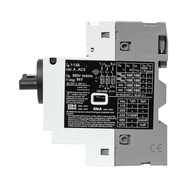 • Диапазон уставки тока расцепления: 1-1,6 A