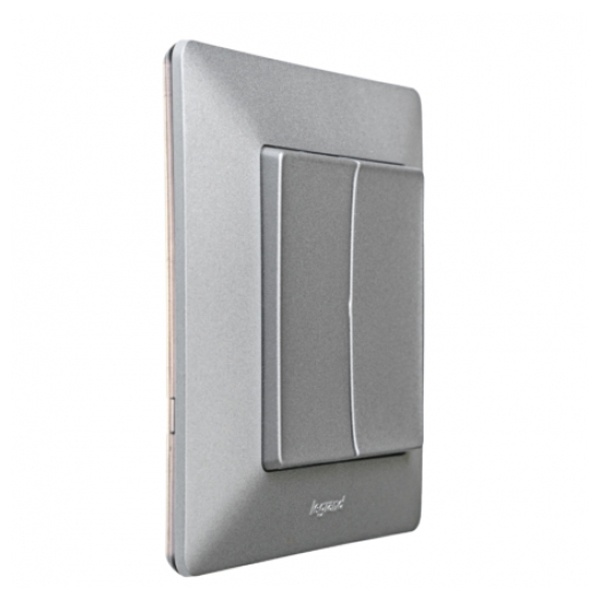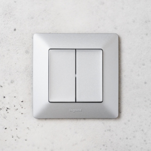 Двухканальный двухклавишный беспроводной выключатель Hite сери Valena Life без рамки, цвет алюминий. HP-LE-L2-alum