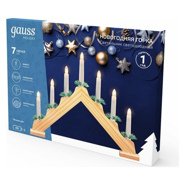 Светильник светодиодный "Новогодняя горка" Gauss серия Holiday предназначен для декоративного освещения и украшения помещений, служит для бытового использования и предназначен для использования в помещениях.
