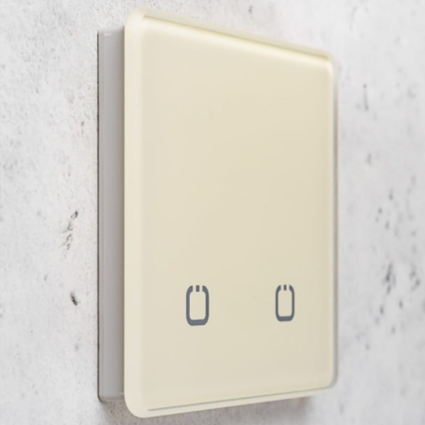 Беспроводной сенсорный выключатель (передатчик сигнала), двухканальный, работа от батарейки, с закругленными углами, бежевый цвет HP-SN-R2-beige
