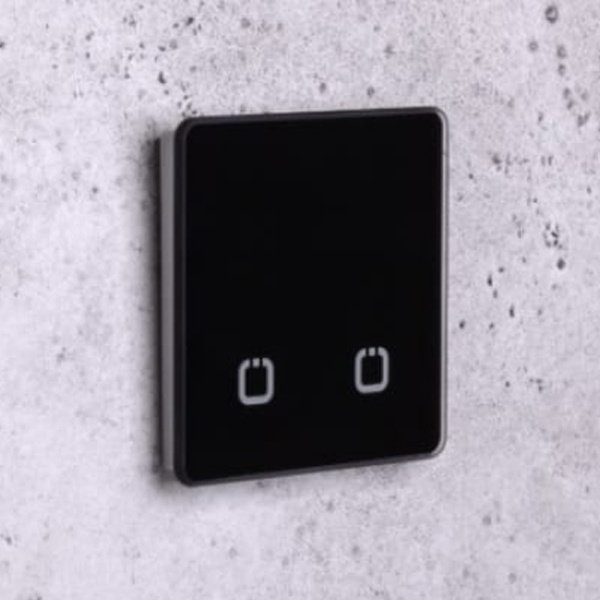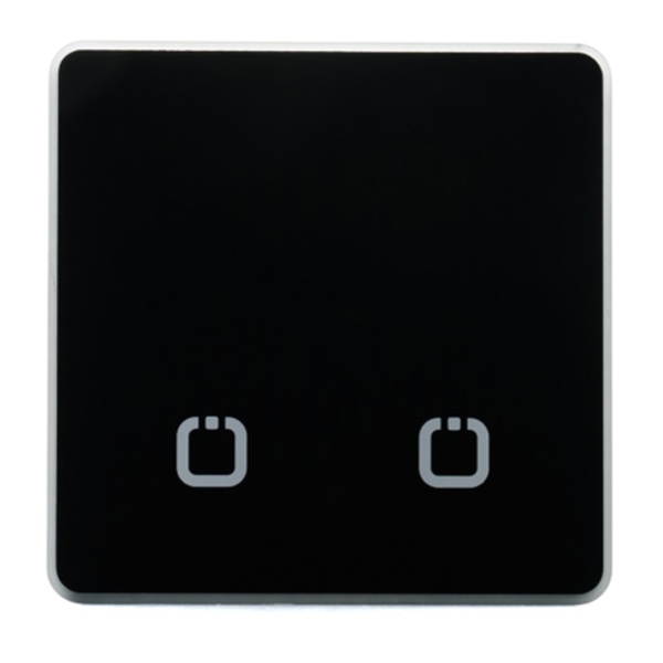 Беспроводной сенсорный выключатель (передатчик сигнала), двухканальный, работа от батарейки, с закругленными углами, черный цвет HP-SN-R2-black