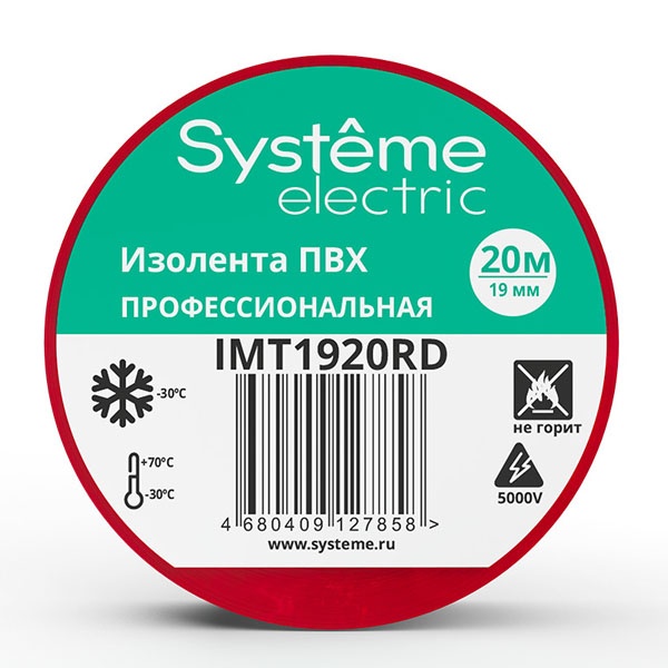 Изоляционная лента ПВХ 20м ширина 19мм красная Систем Электрик IMT1920RD