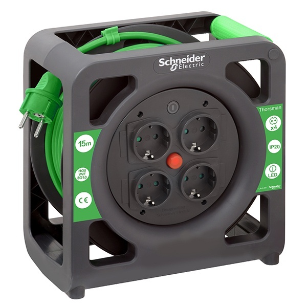 Кабельные катушки Schneider Electric Thorsman могут использоваться как в помещении так и вне его.
