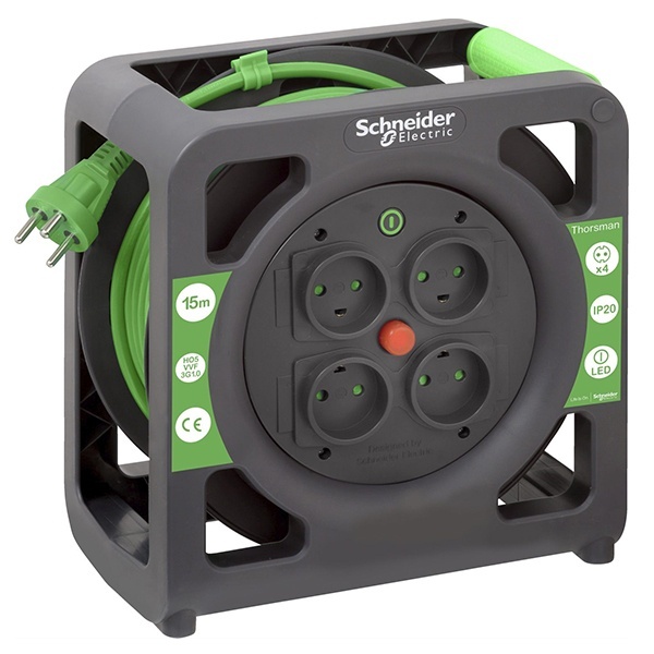 Кабельные катушки Schneider Electric Thorsman могут использоваться как в помещении так и вне его.