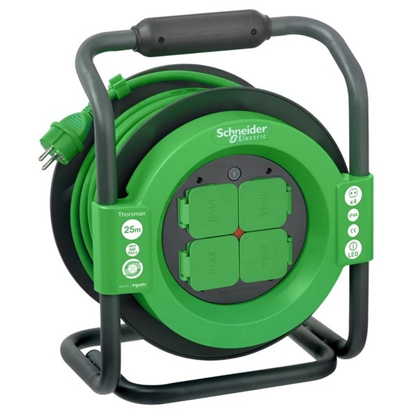 Кабельные катушки Schneider Electric Thorsman могут использоваться как в помещении так и вне его.