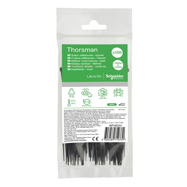 Хомут кабельный Шнайдер Электрик длиной 120 мм и шириной 2,5 мм, черного цвета, упаковка 100 штук IMT46253