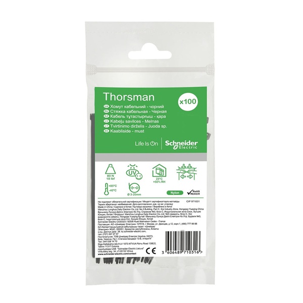 Хомут кабельный Шнайдер Электрик длиной 150 мм и шириной 3,6 мм, черного цвета, упаковка 100 штук IMT46255