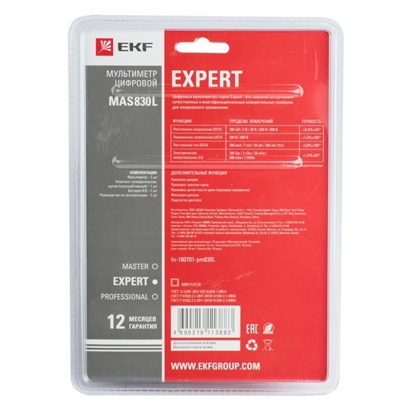 Мультиметр цифровой MAS830L Expert EKF In-180701-pm830L
